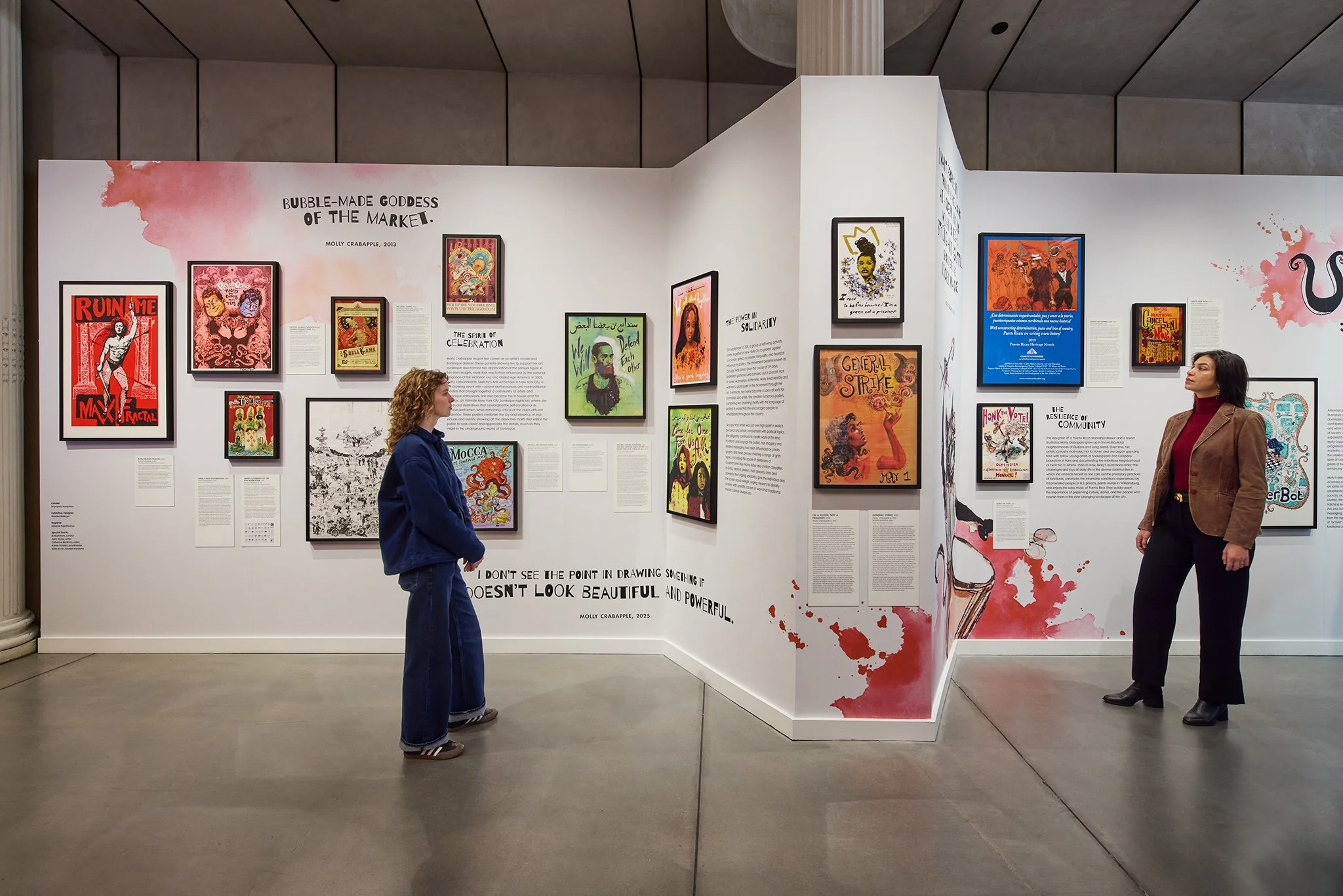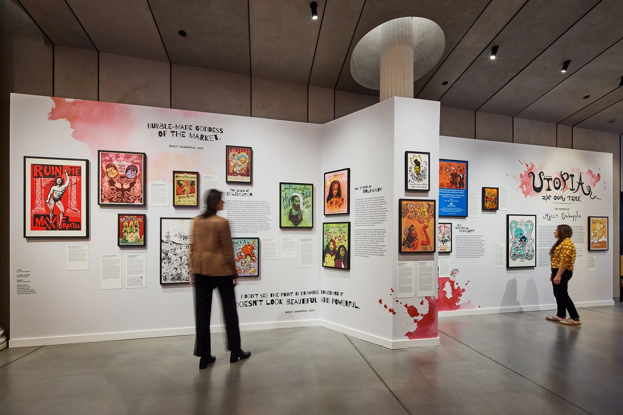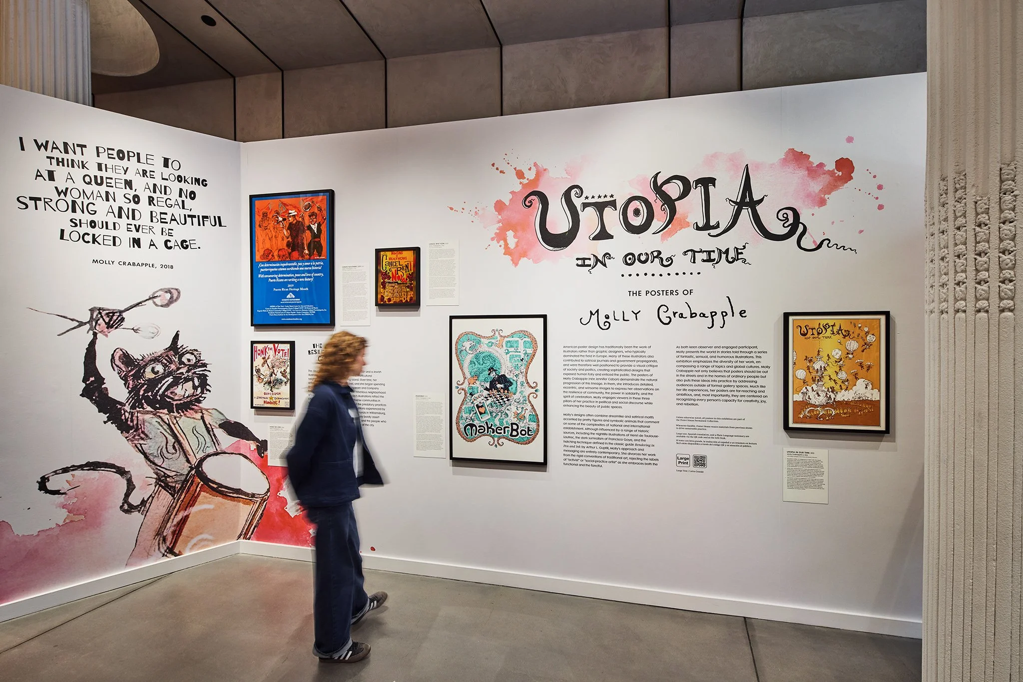 Exhibition design for Utopia in Our Time: The Posters of Molly Crabapple on view at Poster House. Enchanting, haunting, and poignant, illustrator Molly Crabapple’s posters showcase the resilience of community, the power in solidarity, and the spirit of celebration.